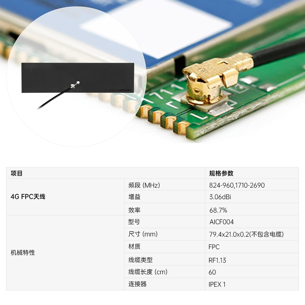 | AICF004 | 4G 偶极子 PCB天线 106.2*17.2*0.8mm47*14.5mm | M01-0501010R0A | 支持定制 |