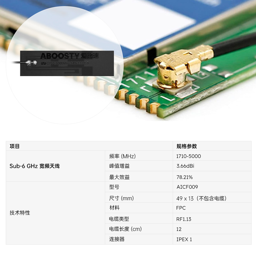 | AAICF009 | 1710-6000MHz超宽带贴片天线 49x13mm | M01-0501300R0A | 支持定制 |