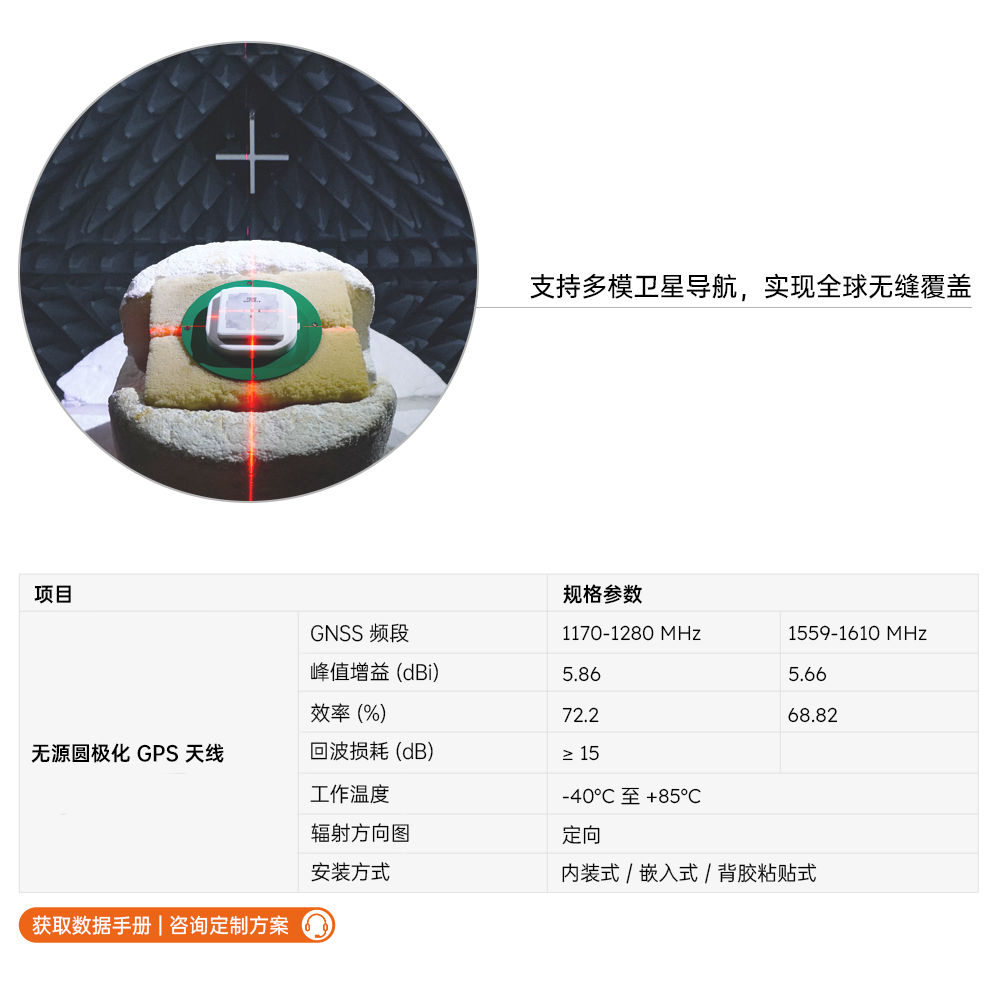 | AIGC066 | 双频 环形极化无源天线 GNSS 嵌入式陶瓷叠层贴片天线 | M04-0106250R0A | 支持定制 |