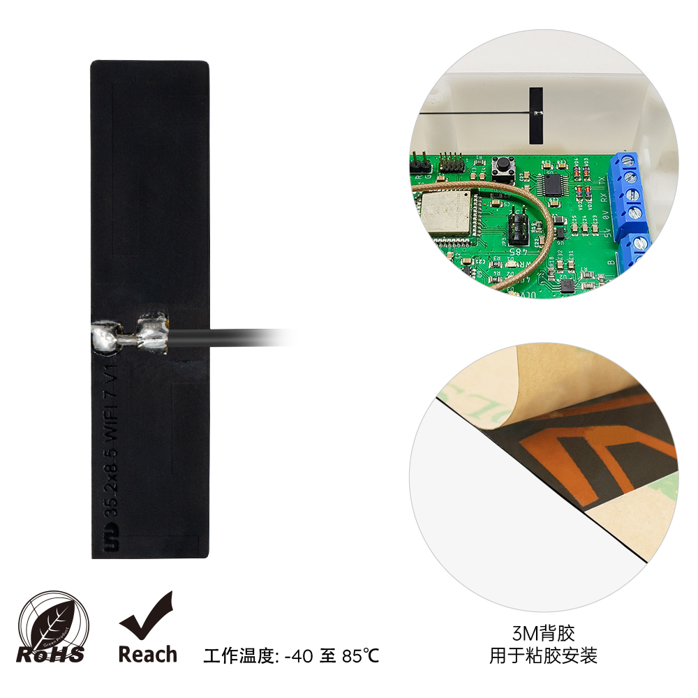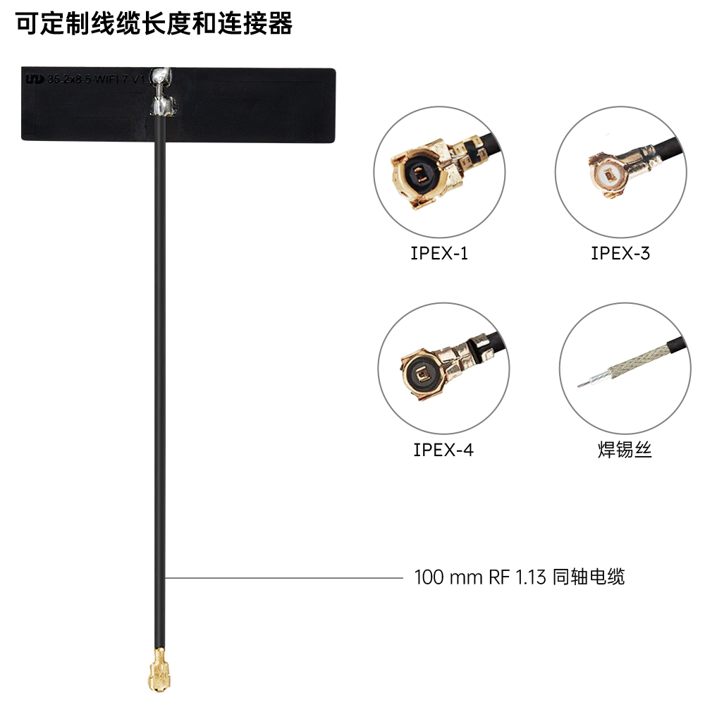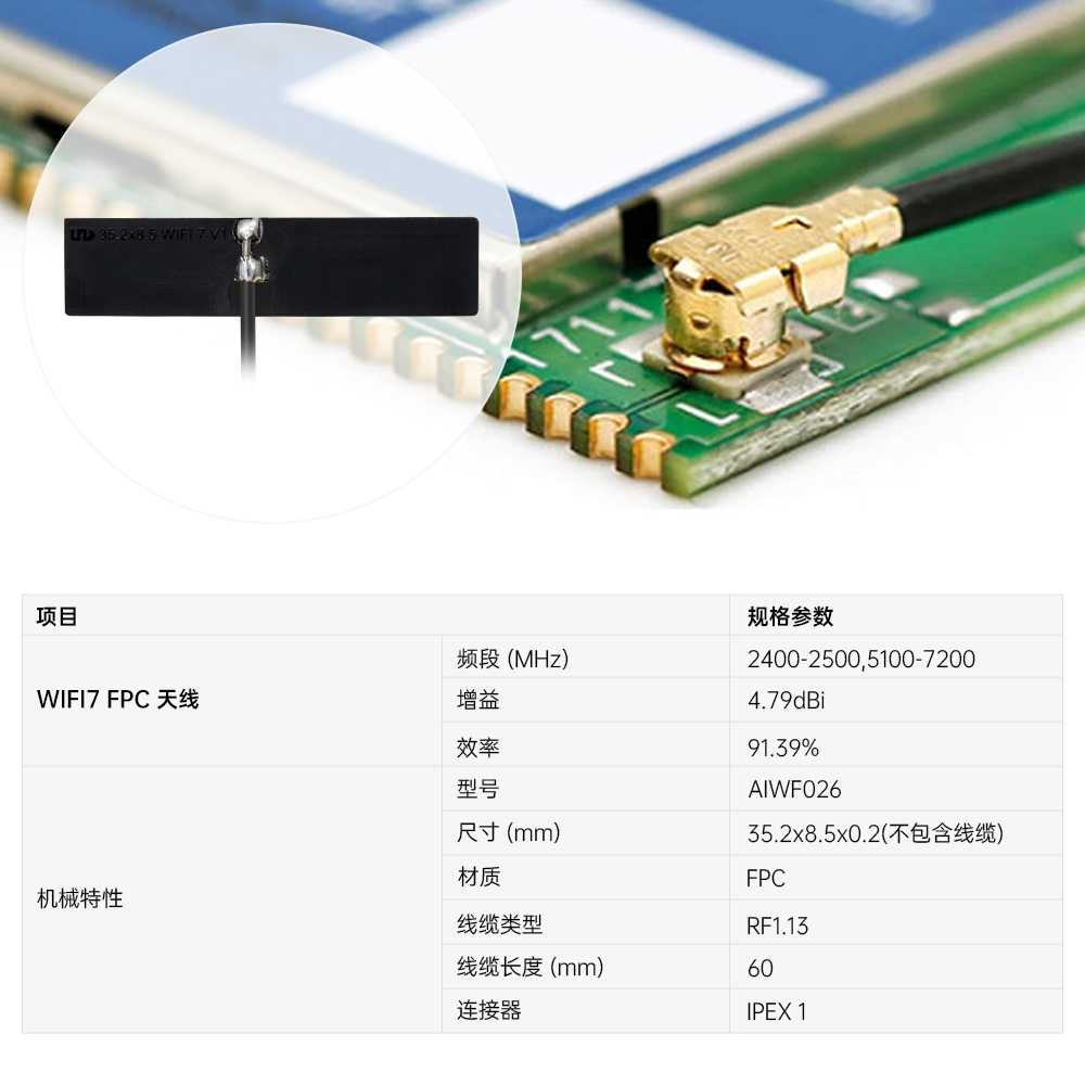 | AIWF026 | WiFi 7全频段FPC柔性贴片天线 35.2x8.5x0.2mm | M01-0201940R0A | 支持定制 |