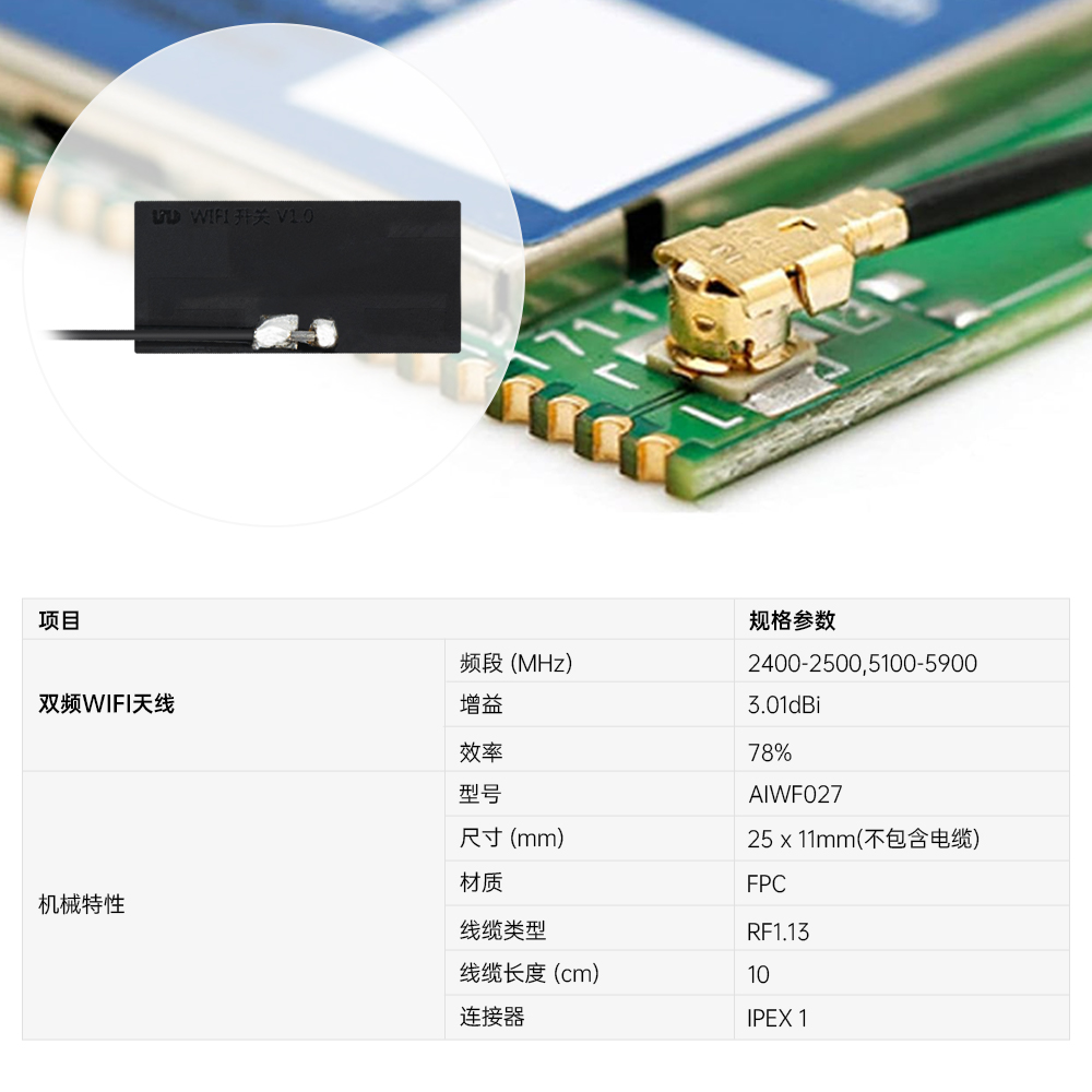 | AIWF027 | 双频Wi-Fi天线 2.4G/5G FPC天线 超薄全向辐射 | M01-0202030R0A | 支持定制 |